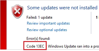 L’erreur 13EC signifie que l’espace disque sur C: est insuffisant. http://wiert.me/2013/12/15/error-13ec-when-installing-the-net-framework-4-5-1-means-you-need-to-free-more-disk-space-3gb-that-is/ Solution : libérer de la place sur C: ou