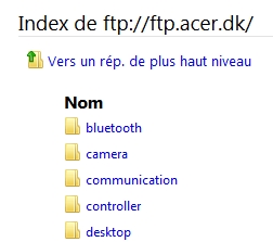 Retrouvez ci-dessous la liste des liens pour télécharger les pilotes et drivers par constructeur : Site FTP de ACER :